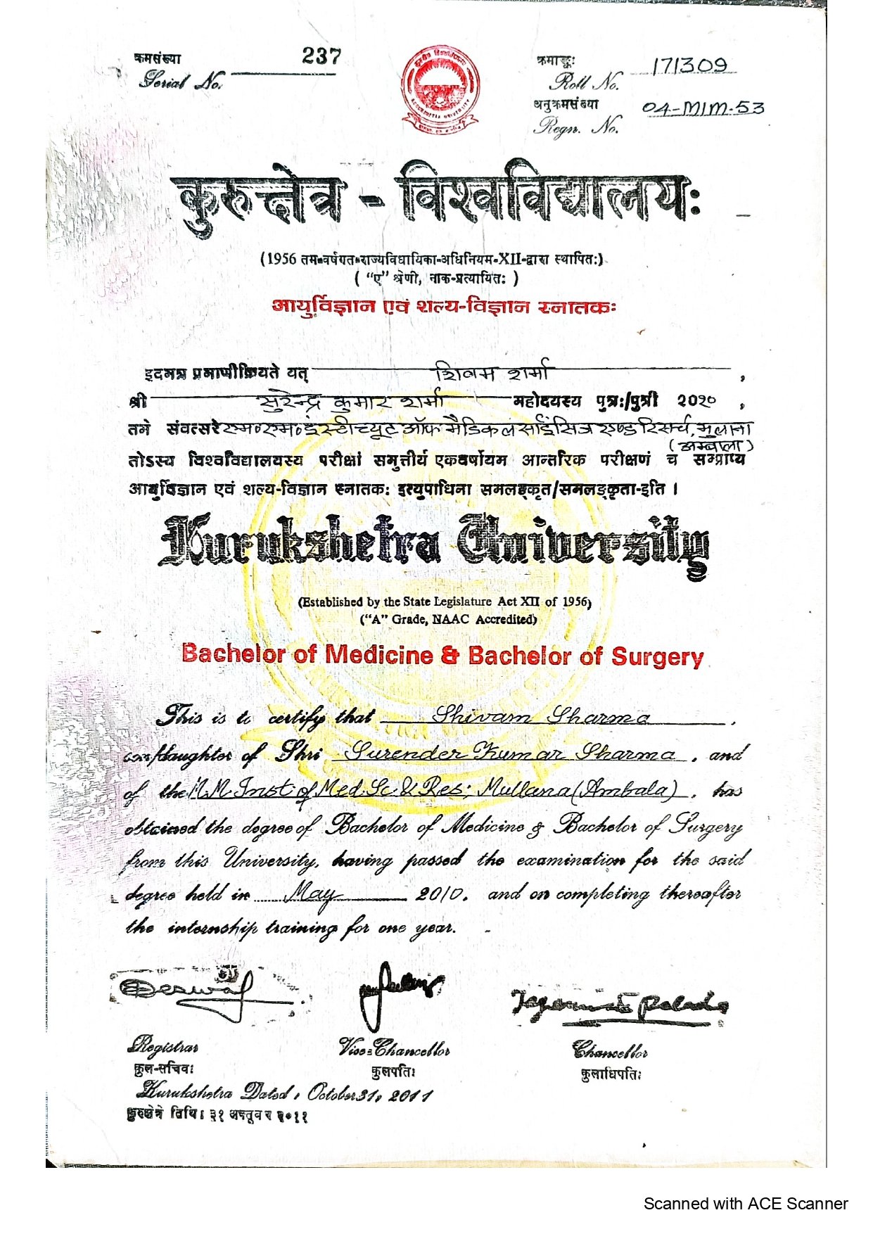 MBBS: Completed From Reputed Indian Medical Institution (KRUKSHETRA UNIVERSTY)