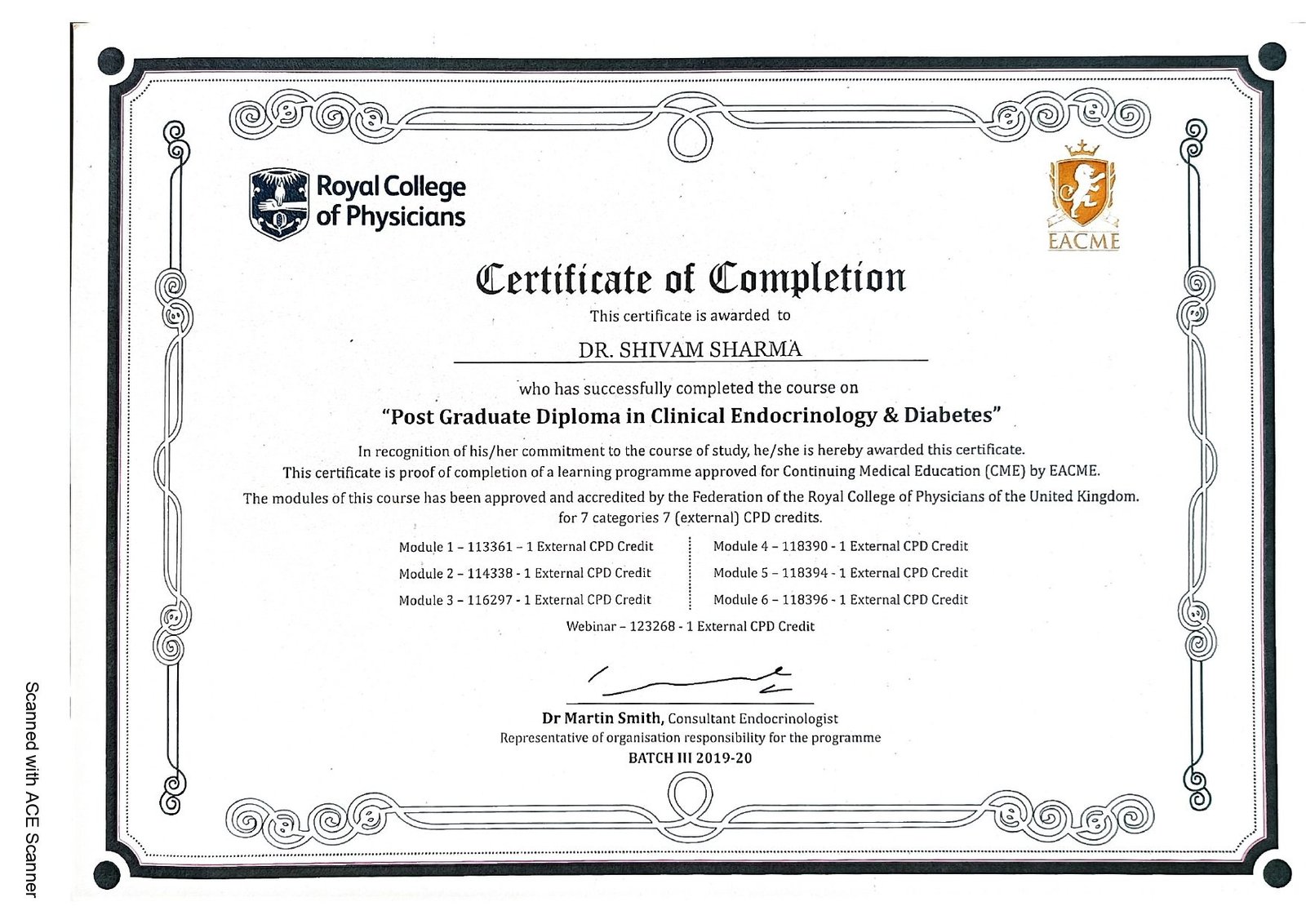 FRCP (Diabetes & Endocrinology): Fellowship From Royal College of Physicians, UK